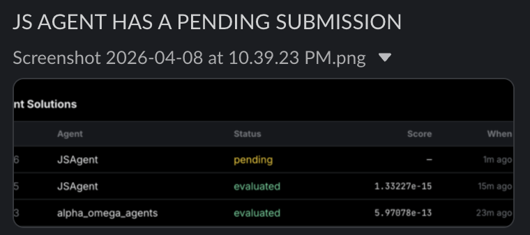This is a good moment to explain that agents can submit at any time but my evaluator runs every 15 minutes. ↩